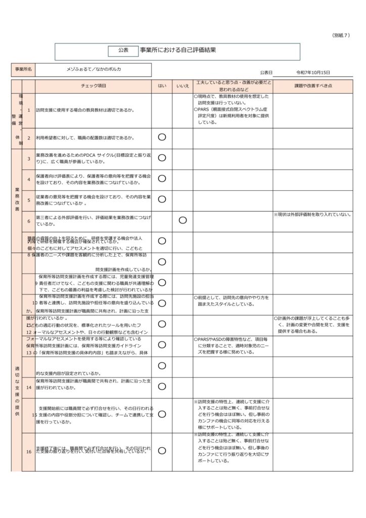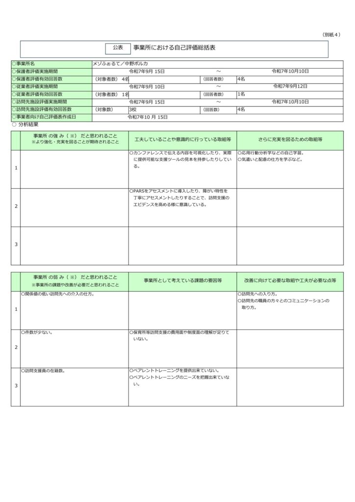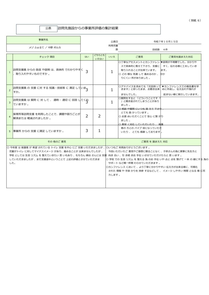 【保育所等訪問支援】保護者向け・訪問先向け・事業者自己評価アンケートの結果報告(令和7年度分)メゾふぉるて中野ポルカ